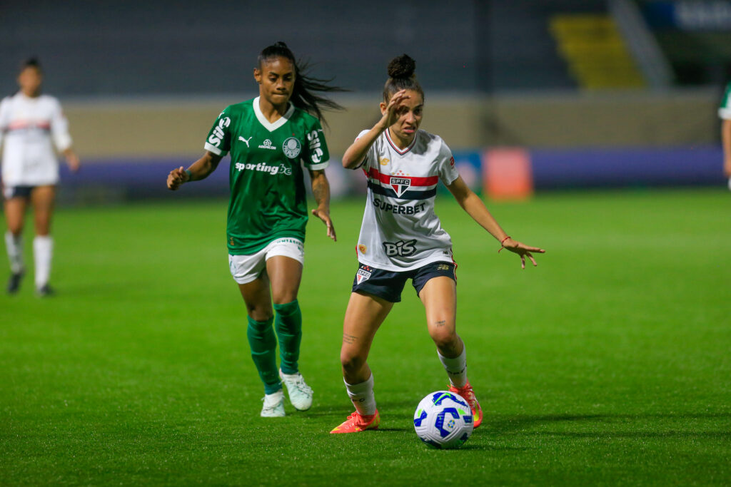 Neste sábado (3), o São Paulo venceu o Palmeiras por 2 a 1, na Arena Barueri, em Barueri (SP), pela nona rodada do Brasileirão. Dudinha e Karla Alves marcaram os gols são-paulinos. CONFIRA MAIS FOTOS DA PARTIDA Na etapa inicial da partida, aos 12 minutos, Aline arriscou de longe, mas a bola subiu demais. Aos […]