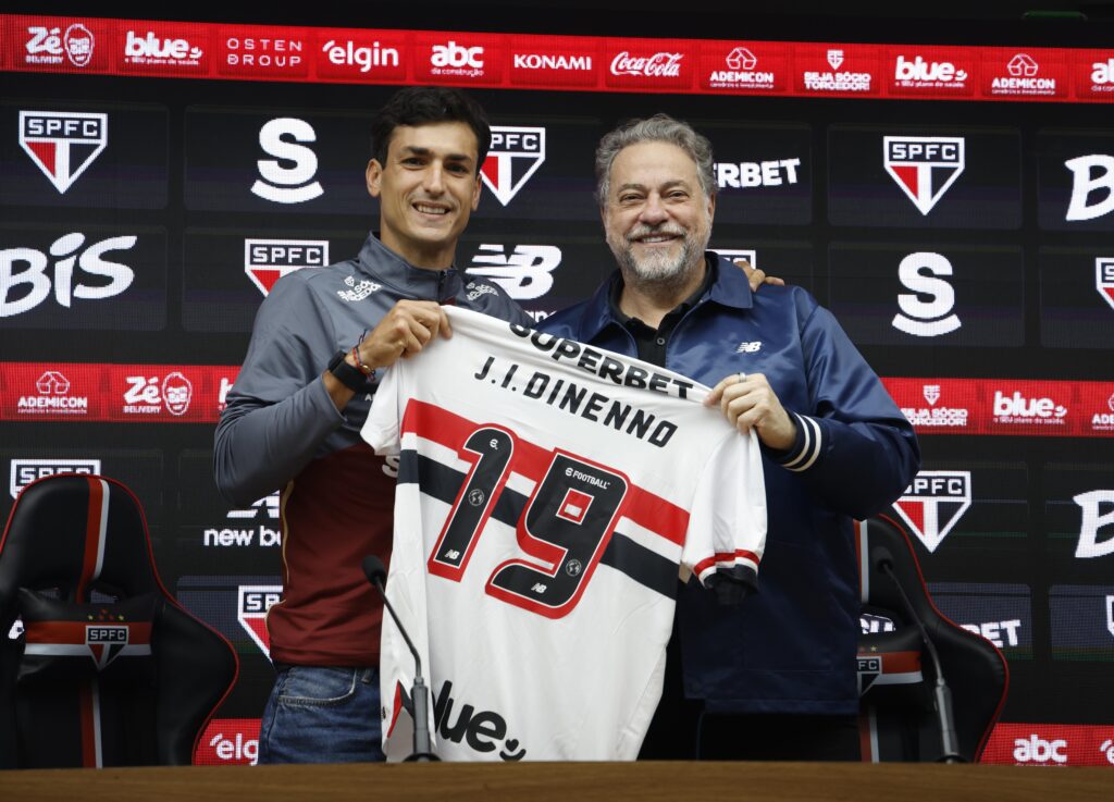 Reforço do Tricolor para a sequência da temporada, o atacante Dinenno foi apresentado nesta quarta-feira (11), no MorumBIS, e concedeu entrevista coletiva após receber as boas-vindas e a camisa do São Paulo das mãos do presidente Julio Casares. “A verdade é que é uma responsabilidade grande, e estou disposto a entregar, fazer o máximo. Vou […]