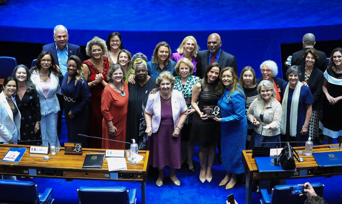 O Senado entregou, nesta quinta-feira (27), o Prêmio Bertha Lutz a 19 mulheres que se destacaram na defesa dos direitos femininos e de questões de gênero no país. A homenagem foi realizada no plenário do Senado Federal.