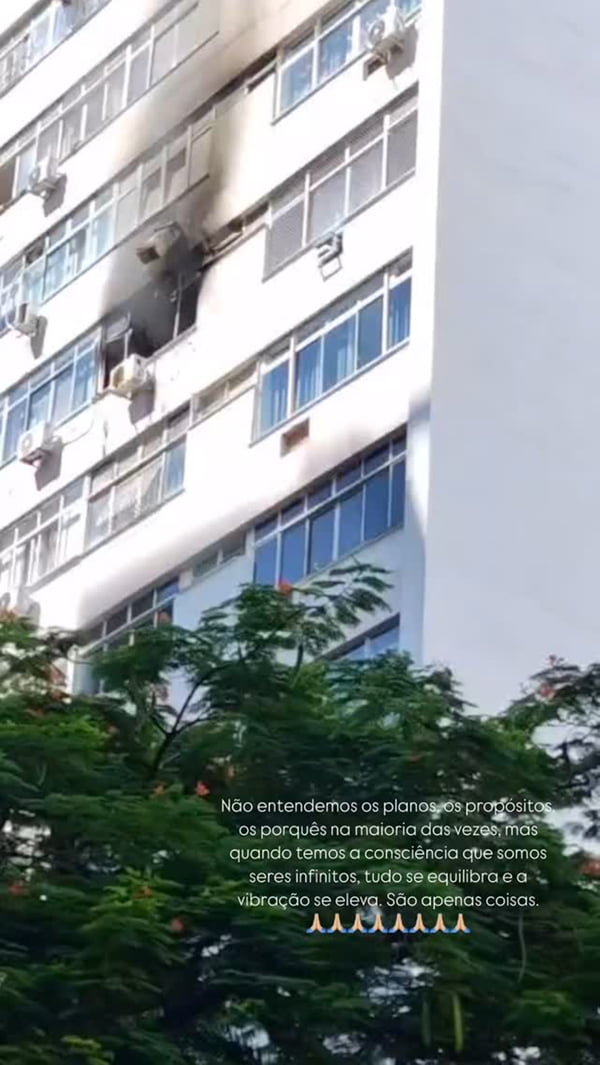Nos stories do Instagram, ela relatou que alguns vizinhos deram apoio e outros foram cobrar os prejuízos, já que o incêndio começou em seu apartamento.